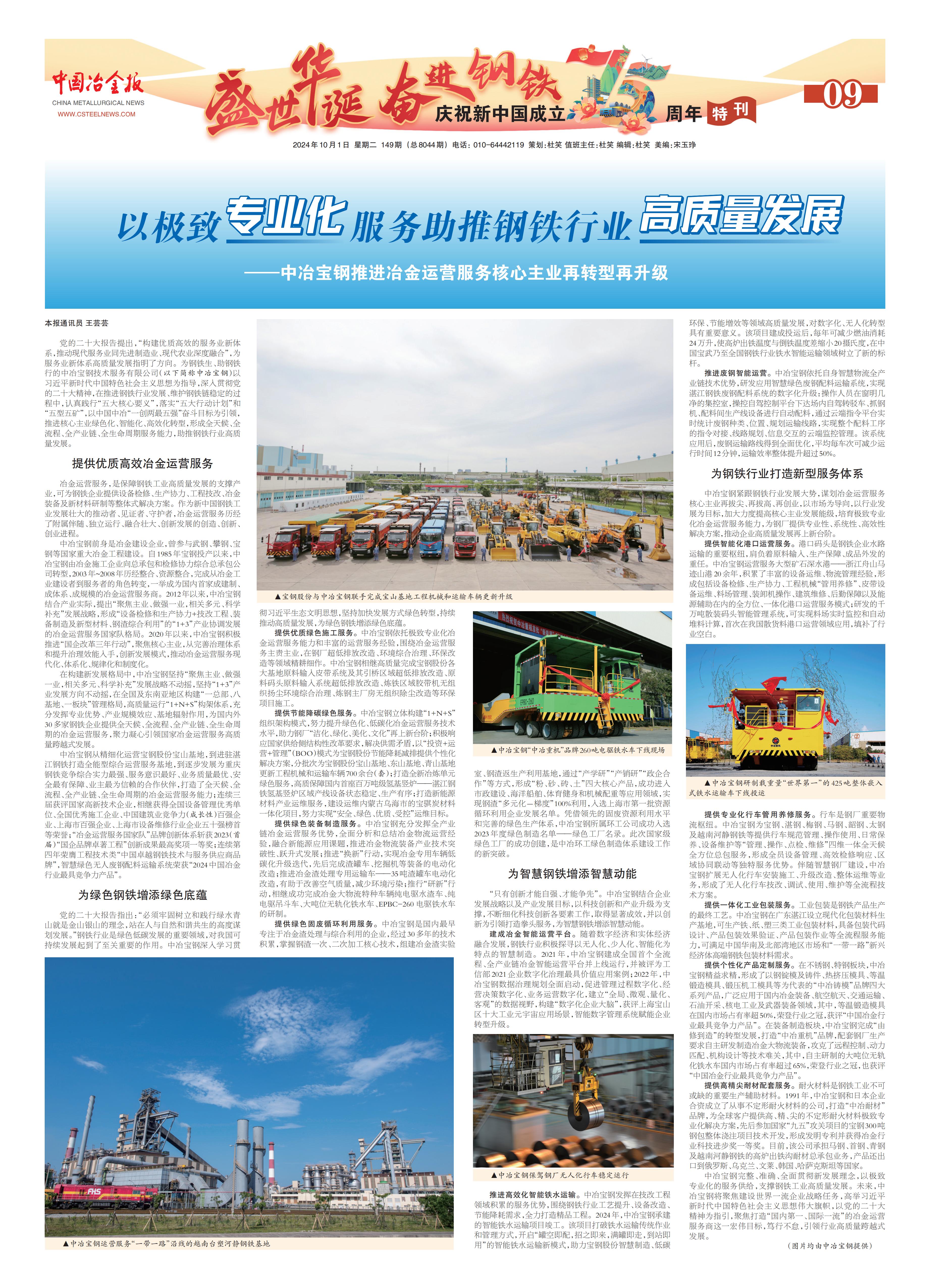 《中國冶金報》:以極致專業化服務助推鋼鐵行業高質量發展